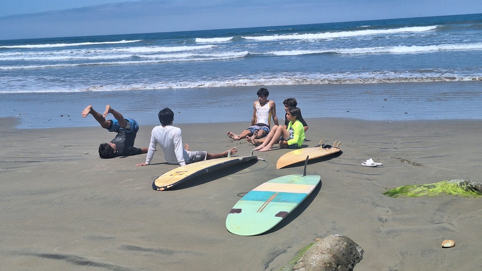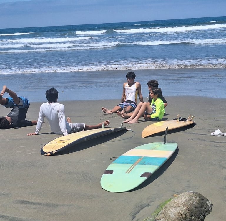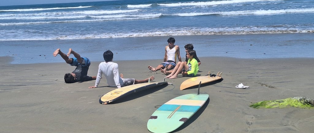 El resultado de mi reflexión no es único, no es original, pero es mío. Entre los múltiples escenarios de pensamiento que pasaron por mi cabeza y corazón, me retumba la admiración que me supone el ímpetu y la valentía de la juventud. Pensaba en como Bruno, Leo y Sam (mis hijos y sobrino) habían asumido con emoción, entusiasmo y valor el aprendizaje de un nuevo deporte como el surf; en un mar con olas y mareas al que no están acostumbrados; con caídas, ahogadas, voladas y todo, y solo en tres días. Y como cada paso que daban hacia adelante, solo aumentaba su emoción y alegría. Sentí una suerte de envidia y nostalgia…qué mal suena, pero es la verdad. Sin embargo, este pensamiento evolucionó…